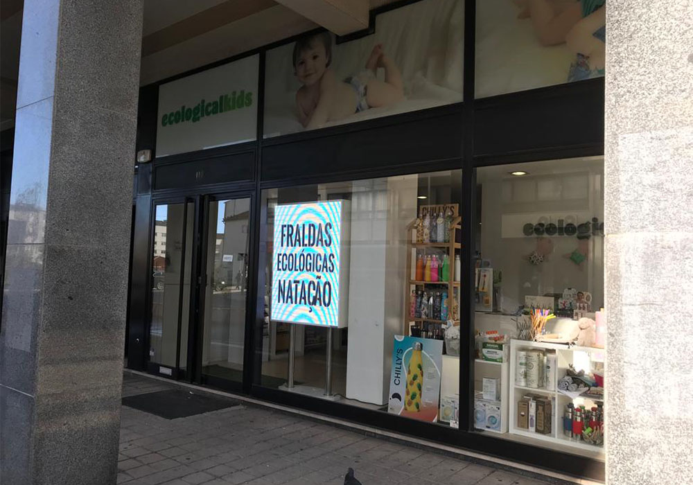 Projeto de instalação de LED Mupi na montra da loja para proporcionar uma maior visibilidade à marca e aos seus produtos.