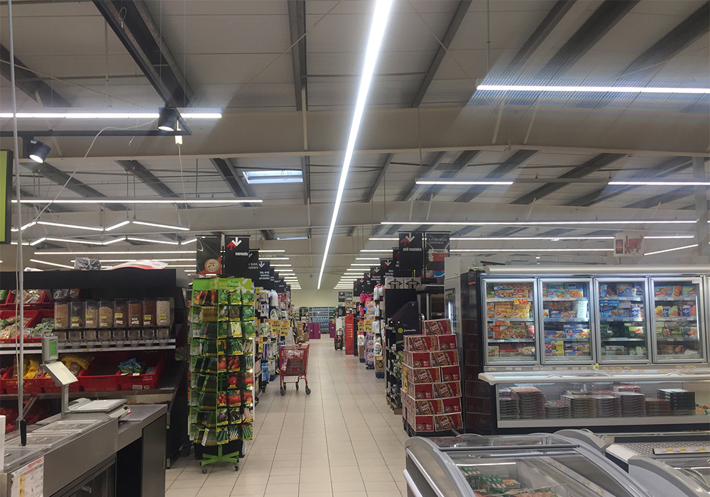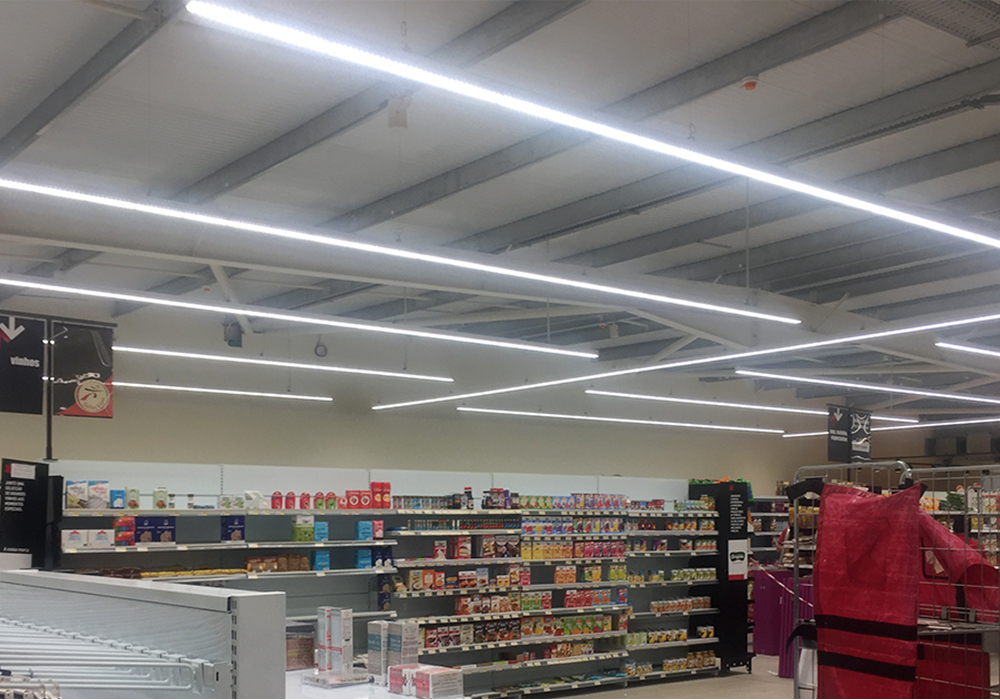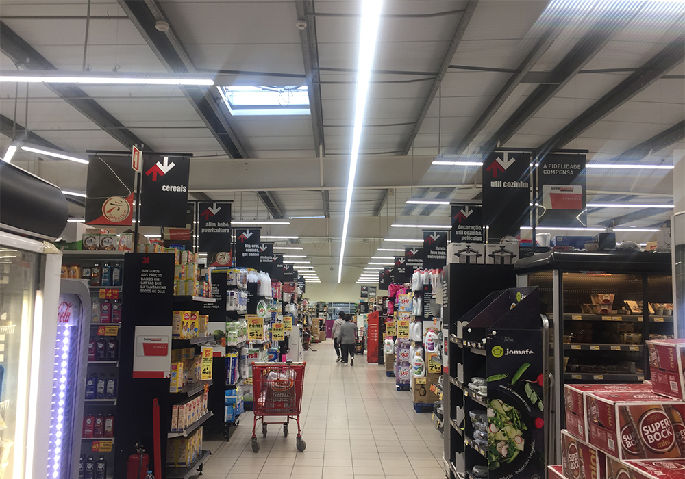 Projeto e instalação de iluminação LED interior no supermercado Intermarché de Montemor o Velho.