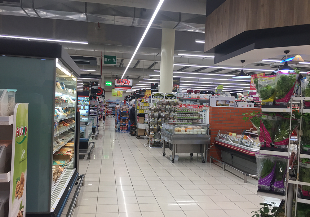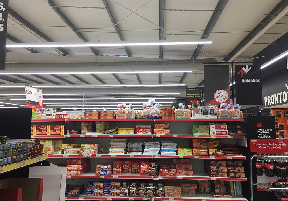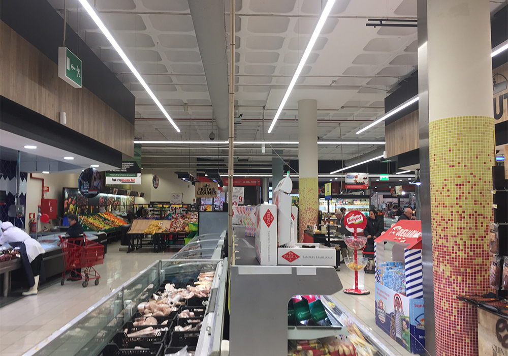 Projeto e instalação de iluminação LED interior no supermercado Intermarché de Olhalvas.