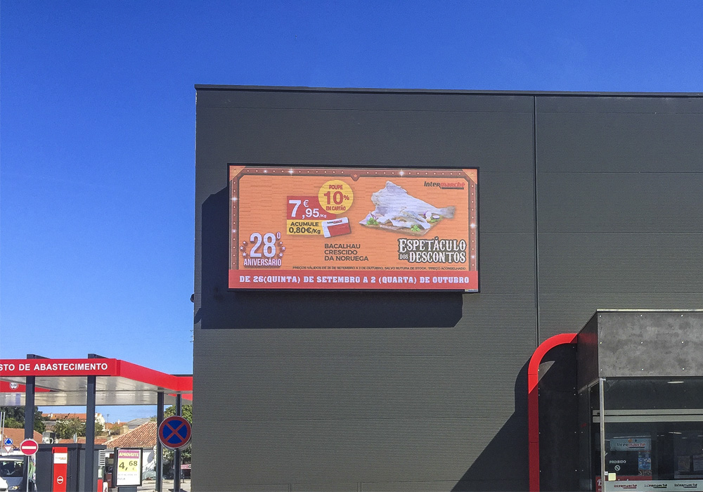 Projeto de instalação de LED Wall no novo Intermarché de Torres Vedras, com o objetivo de inovar e promover os produtos comercializados.