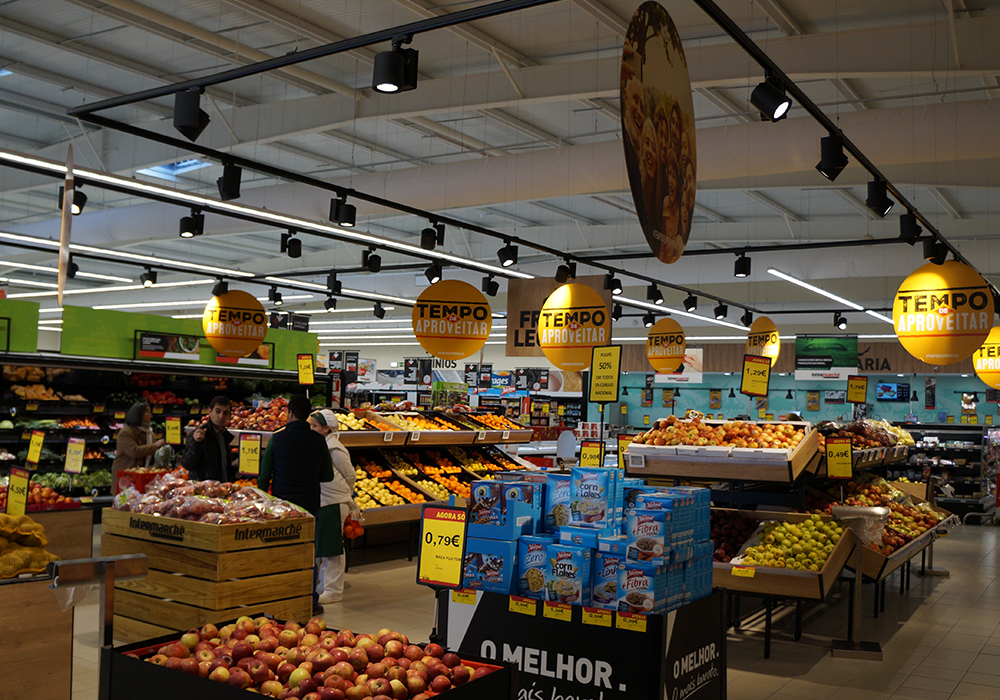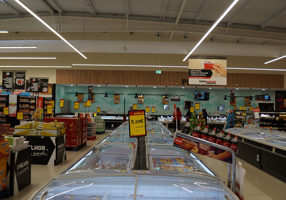 Projeto e instalação de iluminação LED interior e exterior no supermercado Intermarché de Ermesinde.