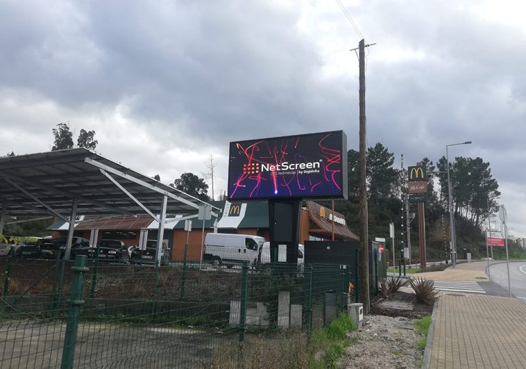 Instalação de um LED Billboard de dupla face, no espaço do estacionamento do Mc Donalds de Pombal, não deixando indiferente quem passa na via pública.