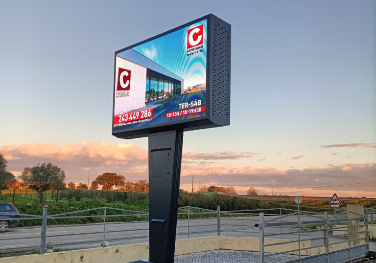 Instalação de LED Billboard dupla face no espaço exterior do armazém comercial dos Móveis Cipriano, captando, mais do que nunca a atenção de quem passa.